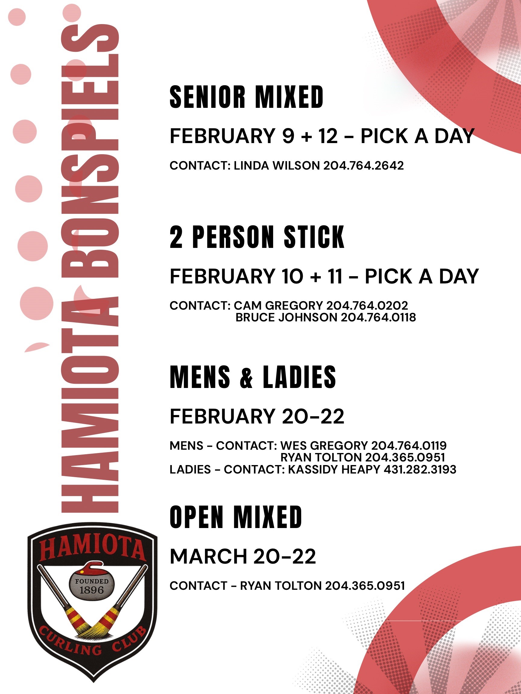 The files below are posters for various other bonspiels held throughout Manitoba. If you are interested in participating in any of these events, please use the contact information shown on each poster.